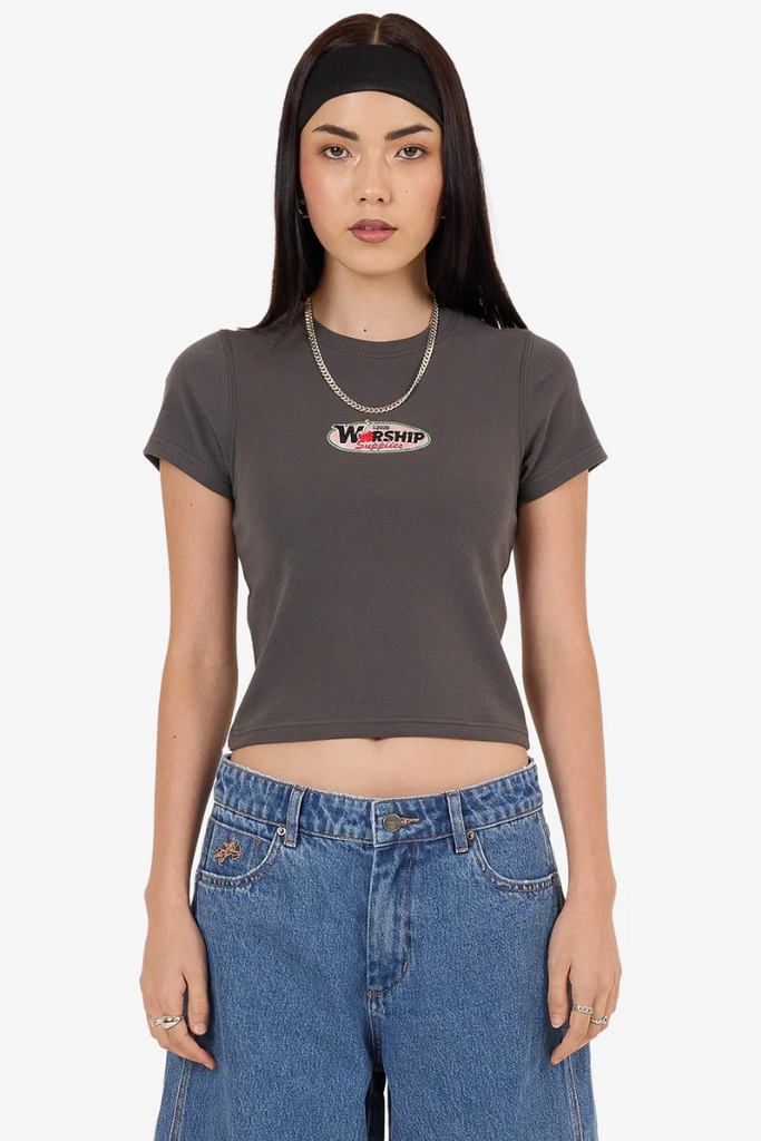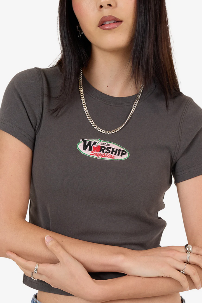 WORSHIP SUPPLIES GLAZED AND CONFUSED SLIM FIT TEE - WORN BLACK