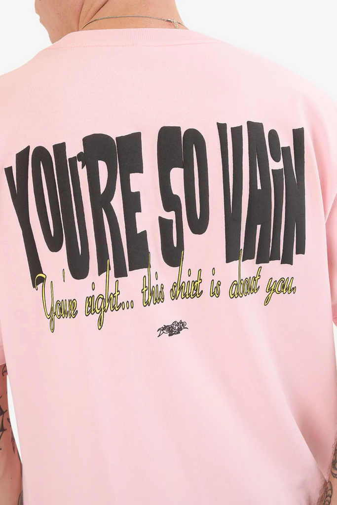 • The Vanity Tee in Candy brings loud energy in a soft pink package. Made from heavyweight 280gsm cotton jersey, this men's tee features puff print graphics on the front and back, highlighting a bold “You’re So Vain” typography across the back. A bold pick for any graphic tees collection, it offers comfort and style in a loose, relaxed fit that’s easy to wear and style with men's denim jeans.