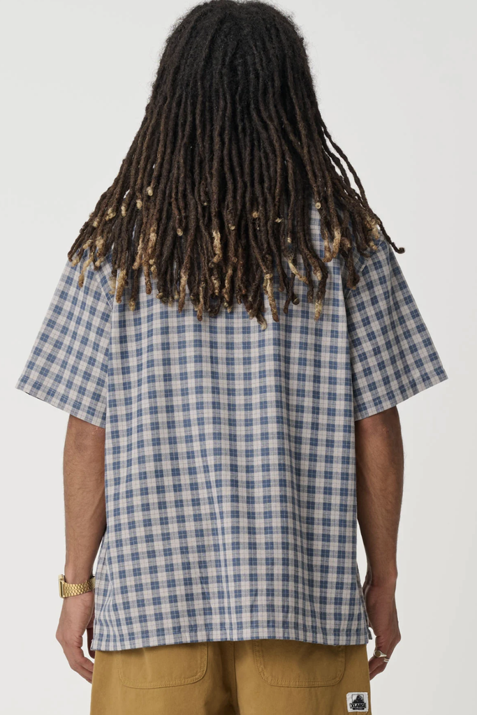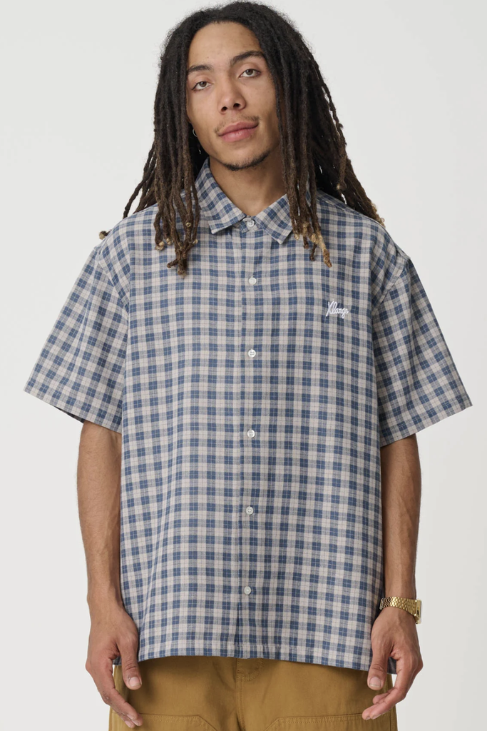 X-LARGE OXFORD SCRIPT SHIRT S/S BUTTON UP - NAVY/TAN